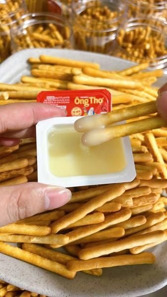 Bánh Quy Đũa Chấm Sữa – 500g là món ăn vặt hấp dẫn với lớp bánh quy giòn rụm bên ngoài và phần kem sữa béo ngậy bên trong. Thiết kế dạng que tiện lợi, dễ cầm nắm, thích hợp cho cả trẻ em và người lớn trong những lúc thư giãn, học tập hoặc làm việc.
